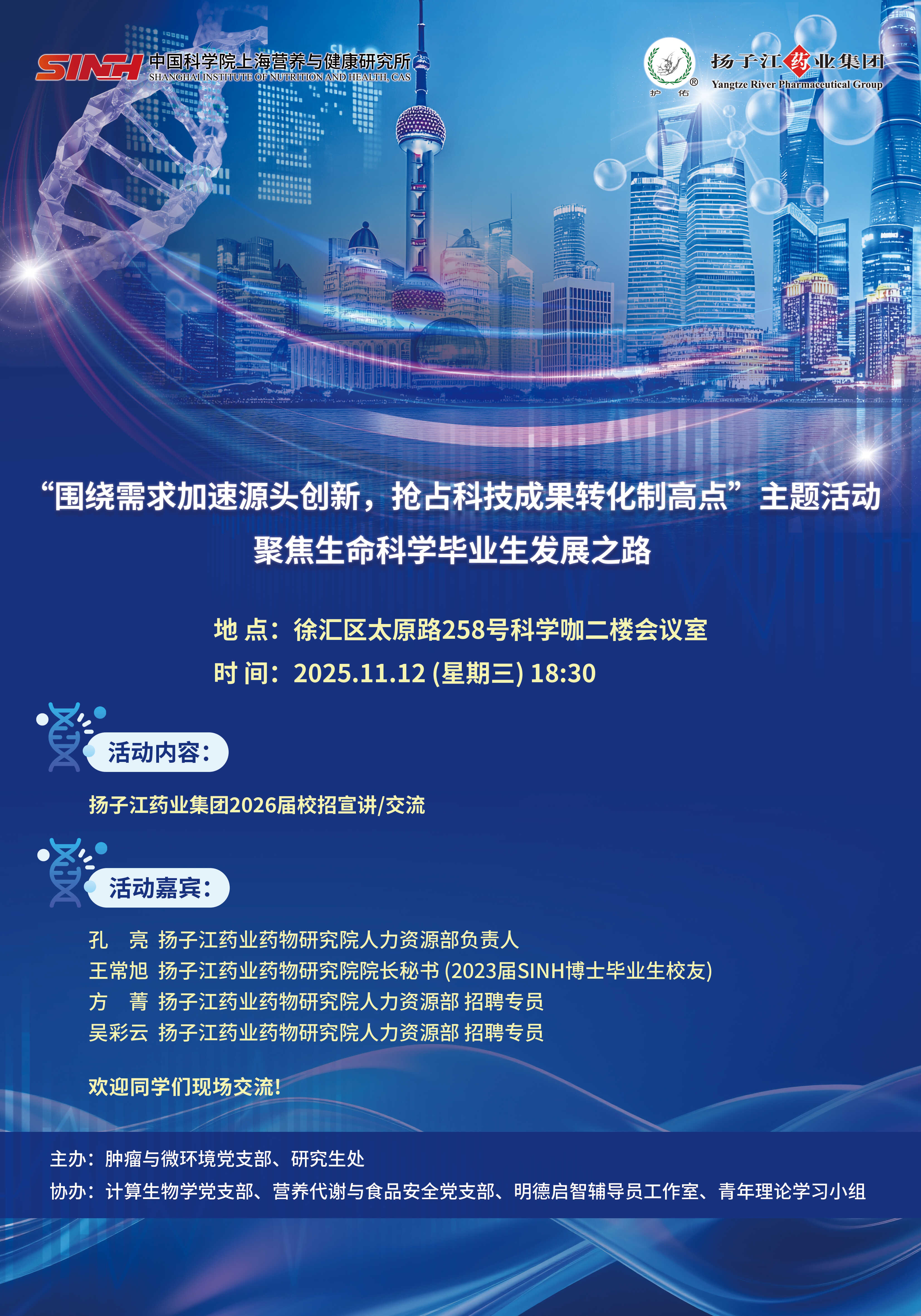 11月12日|聚焦生命科學畢業生發展之路-揚子江藥業集團2026屆校招宣講交流