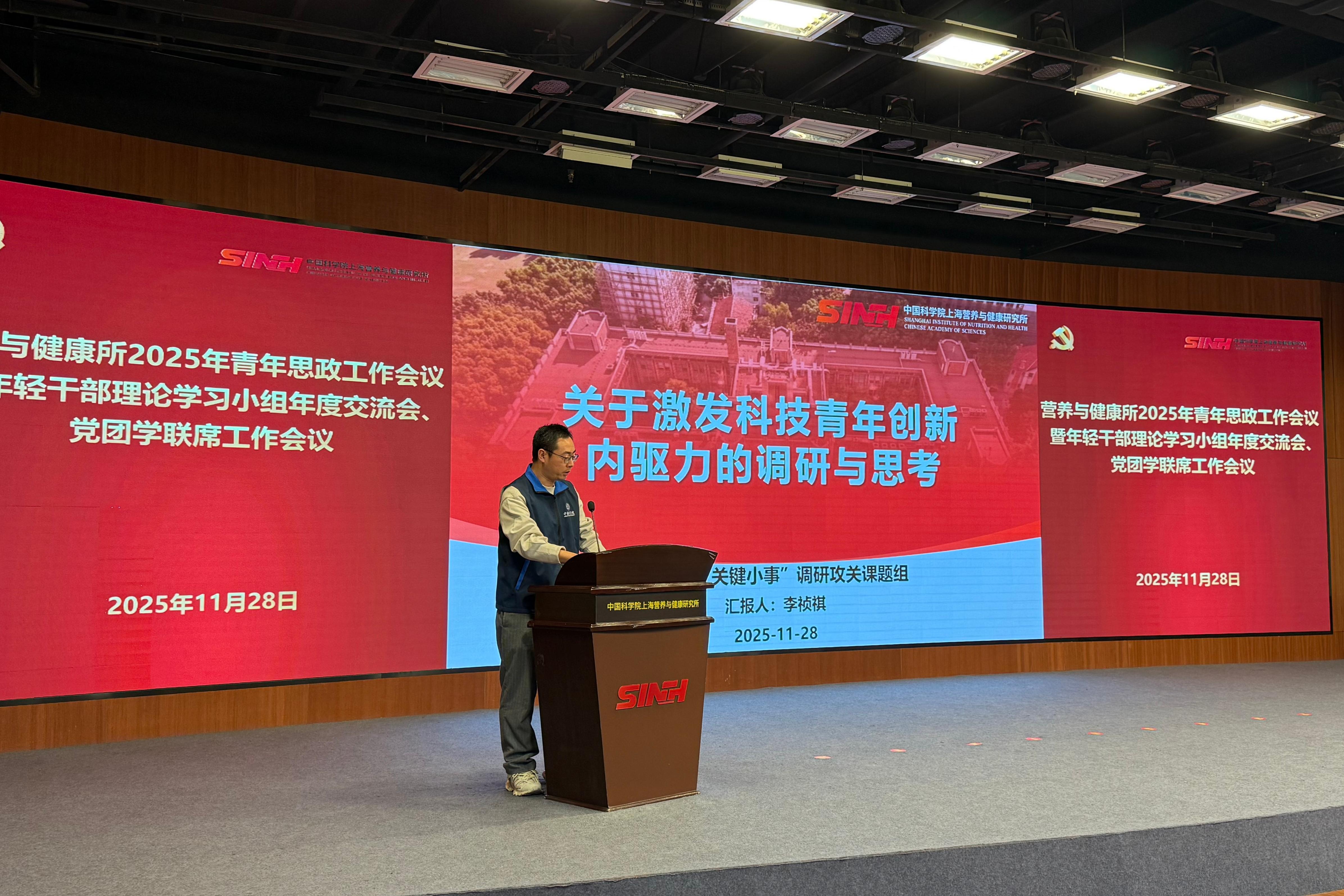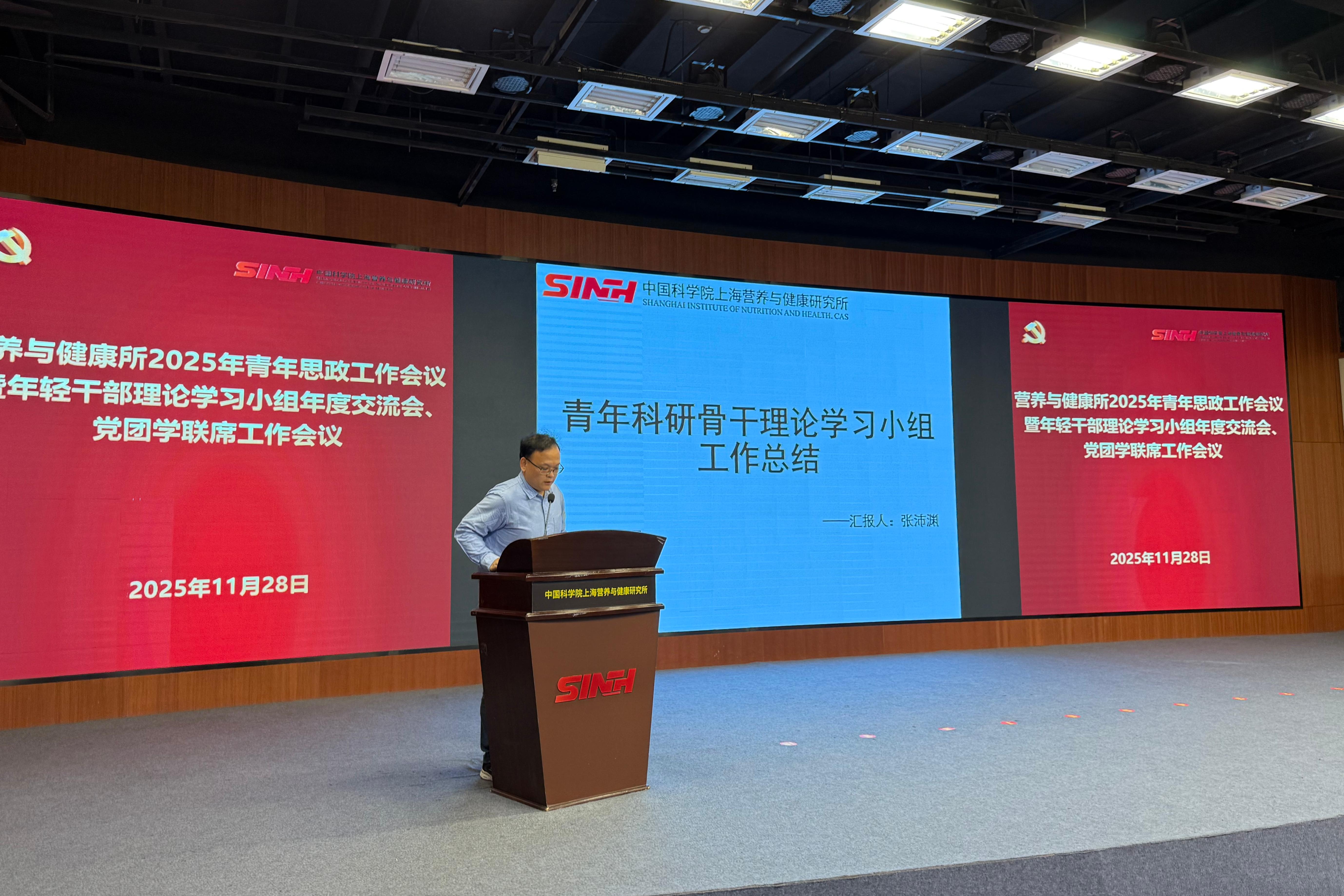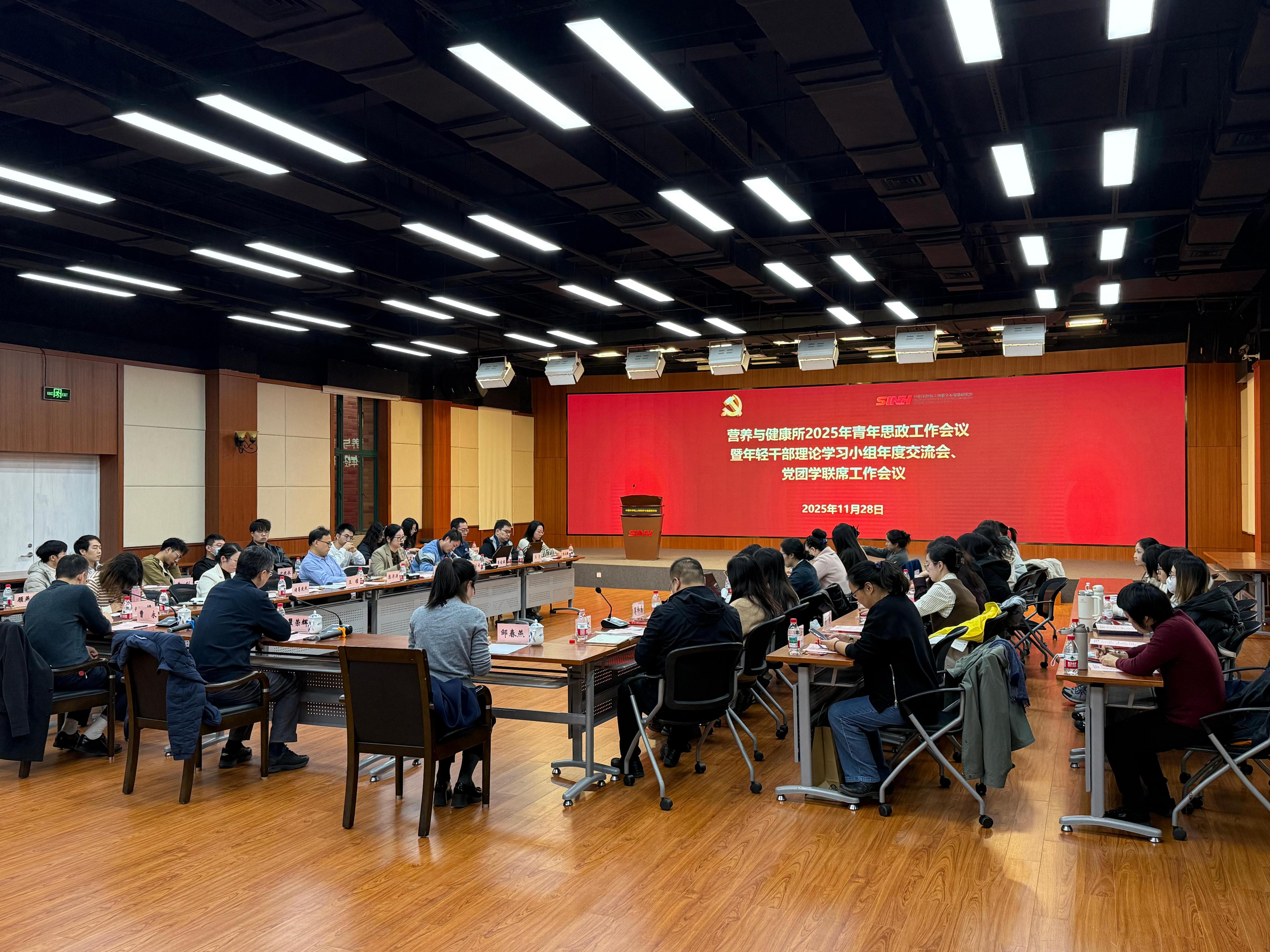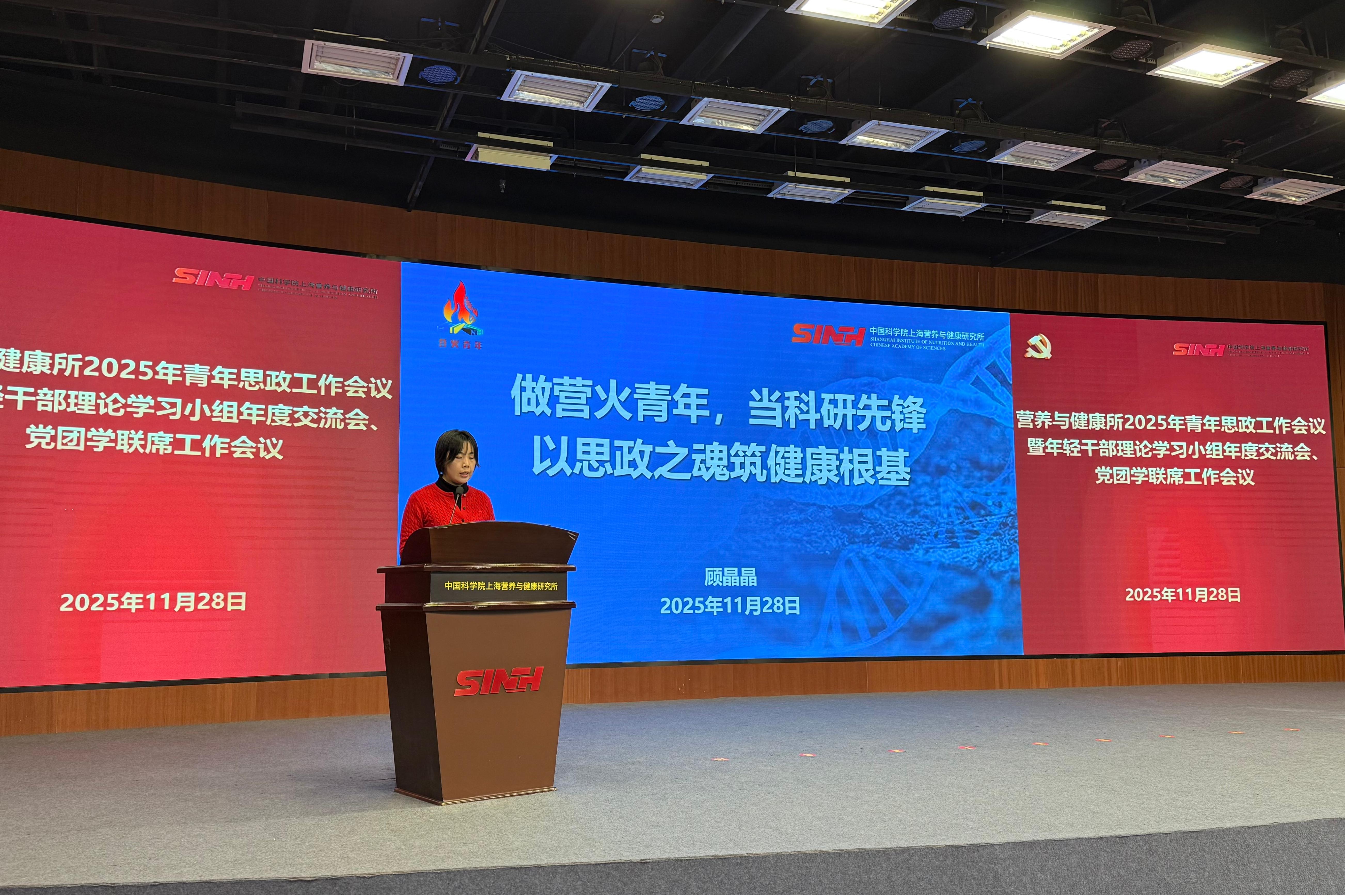 11月28日下午,為進一步推動青年干部和科研人員在研究所高質量發展新征程中展現新擔當、實現新作為,中國科學院上海營養與健康研究所召開2025年青年思政工作會議暨黨團學聯席工作會議。營養與健康所黨委書記瞿榮輝、紀委書記曹永、相關職能部門和黨組織負責人、輔導員代表、各支部青年委員、青年理論學習小組組長及研究生代表近50人參會。